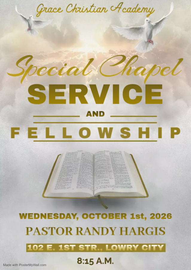 Join us for a Special Chapel Service on Oct. 1, 2025, at 8:15 a.m. Pastor Randy Hargis will be speaking on the character trait of “Steadfastness.” Mr. & Mrs. Abe Strohmeier are providing refreshments.